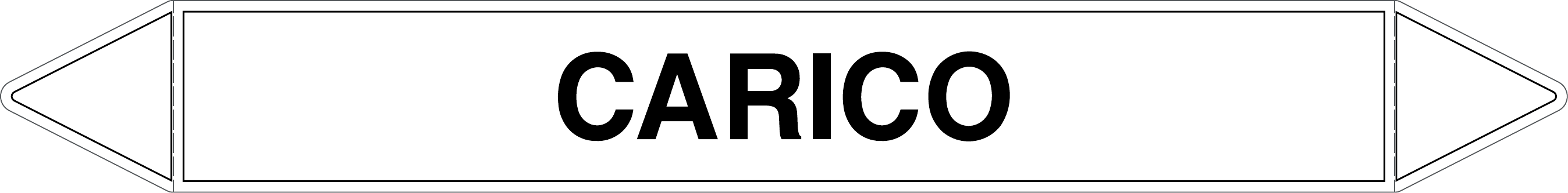 Etichetta autoadesiva per tubazioni realizzata esclusivamente in stampa digitale su PVC con film protettivo anti UV. Colore bianco con dicitura nera.