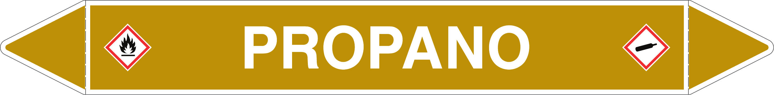 Etichetta autoadesiva per tubazioni realizzata esclusivamente in stampa digitale su PVC con film protettivo anti UV. Colore giallo ocra con dicitura bianca.