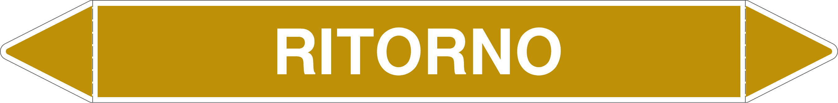 Etichetta autoadesiva per tubazioni realizzata esclusivamente in stampa digitale su PVC con film protettivo anti UV. Colore giallo ocra con dicitura bianca.