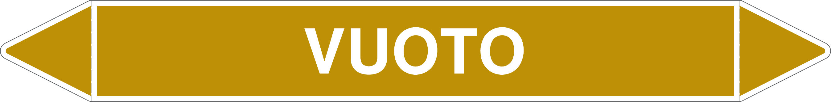 Etichetta autoadesiva per tubazioni realizzata esclusivamente in stampa digitale su PVC con film protettivo anti UV. Colore giallo ocra con dicitura bianca.
