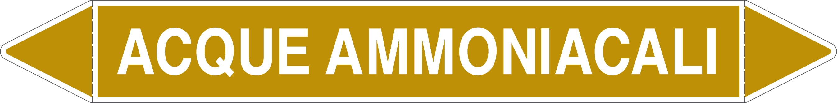 Etichetta autoadesiva per tubazioni realizzata esclusivamente in stampa digitale su PVC con film protettivo anti UV. Colore giallo ocra con dicitura bianca.