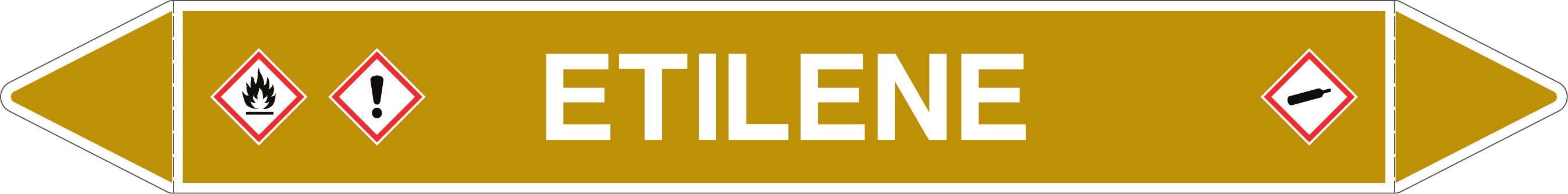 Etichetta autoadesiva per tubazioni realizzata esclusivamente in stampa digitale su PVC con film protettivo anti UV. Colore giallo ocra con dicitura bianca.
