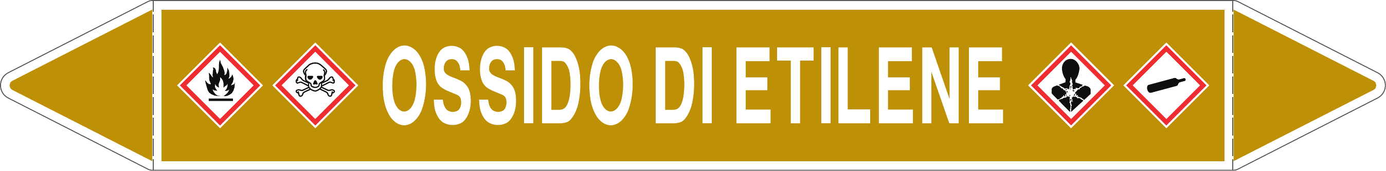 Etichetta autoadesiva per tubazioni realizzata esclusivamente in stampa digitale su PVC con film protettivo anti UV. Colore giallo ocra con dicitura bianca.