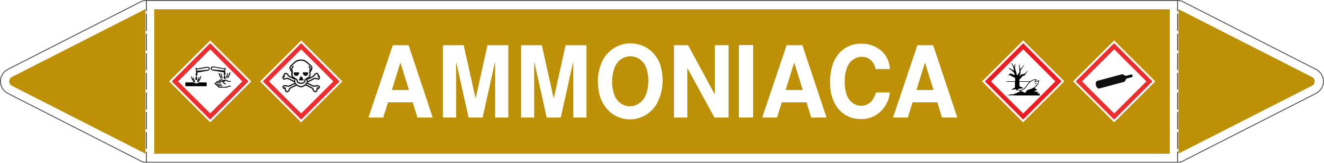 Etichetta autoadesiva per tubazioni realizzata esclusivamente in stampa digitale su PVC con film protettivo anti UV. Colore giallo ocra con dicitura bianca.