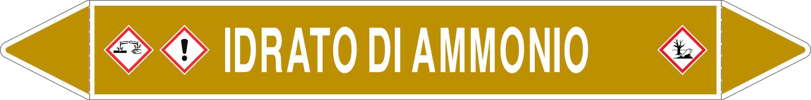 Etichetta autoadesiva per tubazioni realizzata esclusivamente in stampa digitale su PVC con film protettivo anti UV. Colore giallo ocra con dicitura bianca.