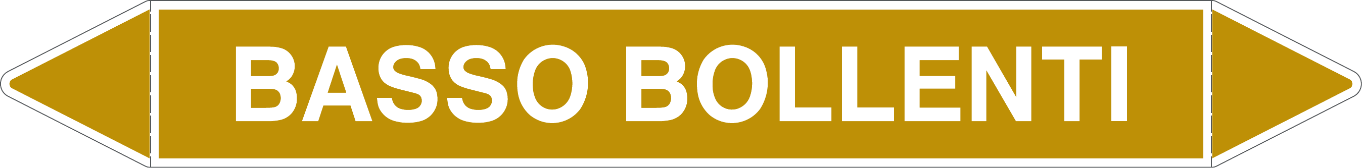 Etichetta autoadesiva per tubazioni realizzata esclusivamente in stampa digitale su PVC con film protettivo anti UV. Colore giallo ocra con dicitura bianca.