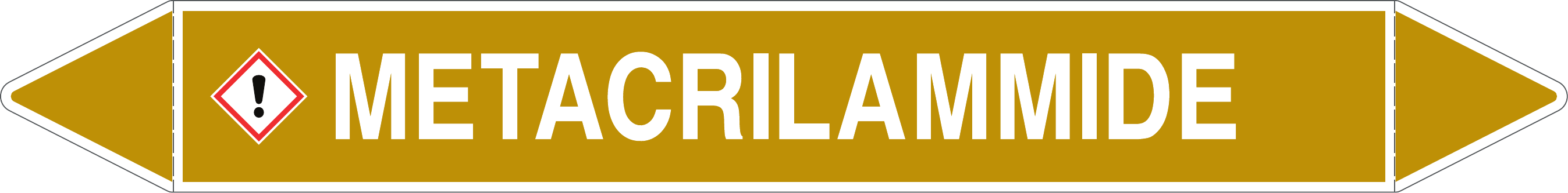Etichetta autoadesiva per tubazioni realizzata esclusivamente in stampa digitale su PVC con film protettivo anti UV. Colore giallo ocra con dicitura bianca.