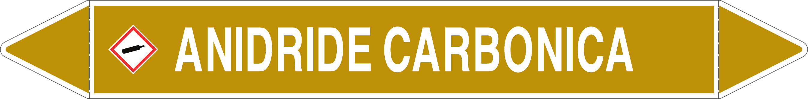 Etichetta autoadesiva per tubazioni realizzata esclusivamente in stampa digitale su PVC con film protettivo anti UV. Colore giallo ocra con dicitura bianca.