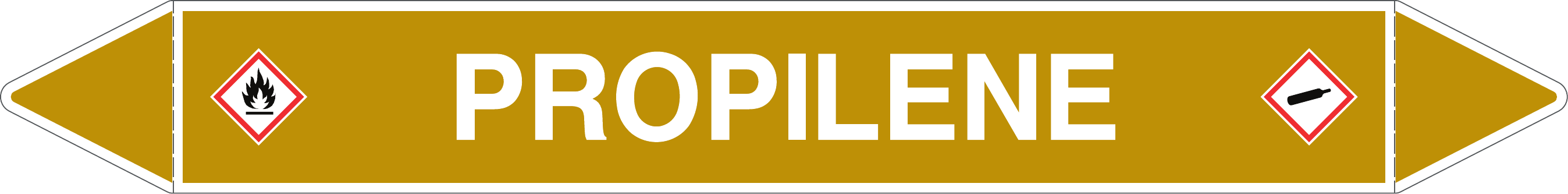 Etichetta autoadesiva per tubazioni realizzata esclusivamente in stampa digitale su PVC con film protettivo anti UV. Colore giallo ocra con dicitura bianca.