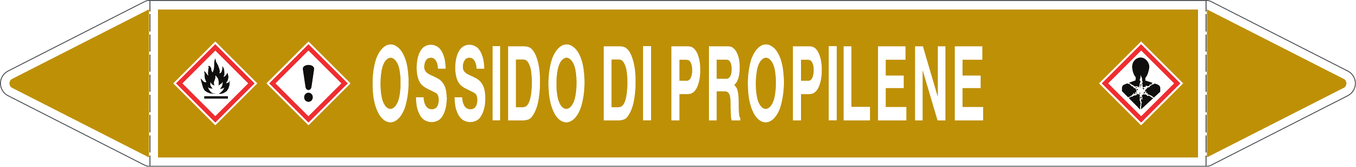 Etichetta autoadesiva per tubazioni realizzata esclusivamente in stampa digitale su PVC con film protettivo anti UV. Colore giallo ocra con dicitura bianca.