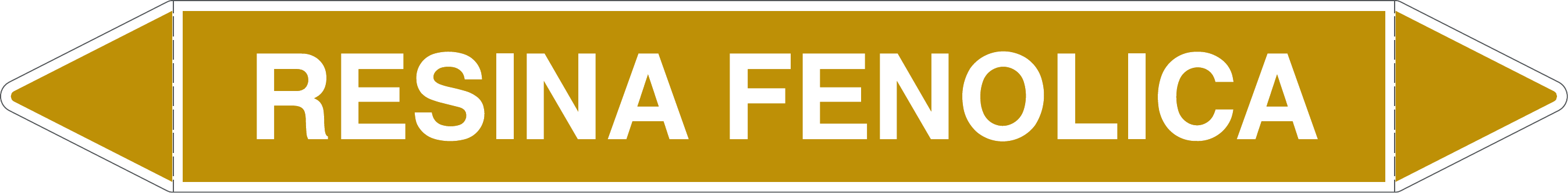 Etichetta autoadesiva per tubazioni realizzata esclusivamente in stampa digitale su PVC con film protettivo anti UV. Colore giallo ocra con dicitura bianca.