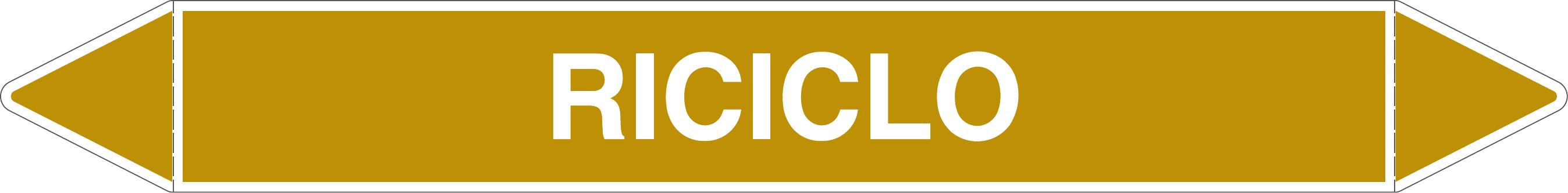 Etichetta autoadesiva per tubazioni realizzata esclusivamente in stampa digitale su PVC con film protettivo anti UV. Colore giallo ocra con dicitura bianca.