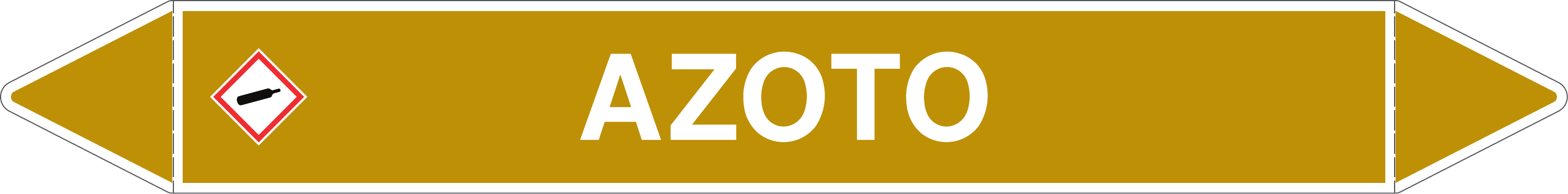 Etichetta autoadesiva per tubazioni realizzata esclusivamente in stampa digitale su PVC con film protettivo anti UV. Colore giallo ocra con dicitura bianca.