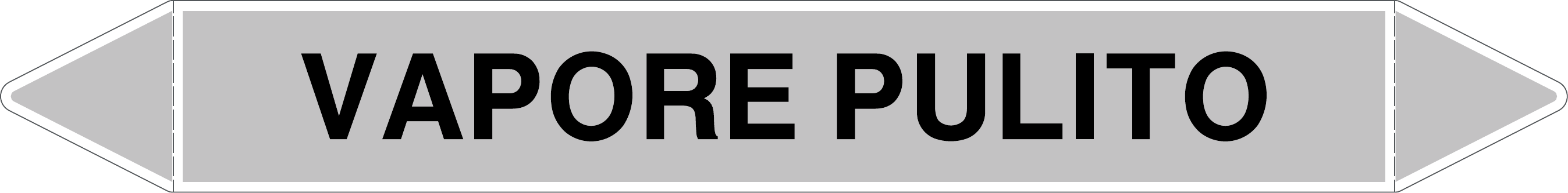 Etichetta autoadesiva per tubazioni realizzata esclusivamente in stampa digitale su PVC con film protettivo anti UV. Colore grigio con dicitura nera.
