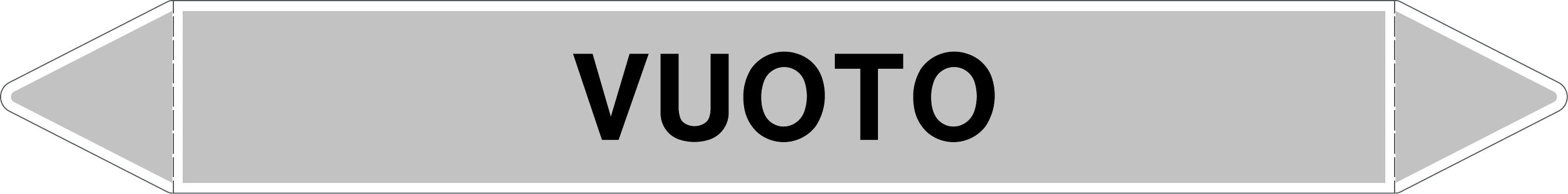 Etichetta autoadesiva per tubazioni realizzata esclusivamente in stampa digitale su PVC con film protettivo anti UV. Colore grigio con dicitura nera.