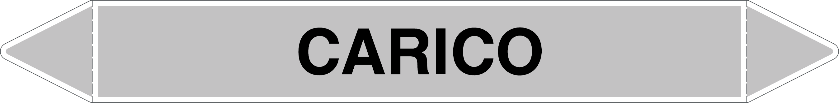 Etichetta autoadesiva per tubazioni realizzata esclusivamente in stampa digitale su PVC con film protettivo anti UV. Colore grigio con dicitura nera.