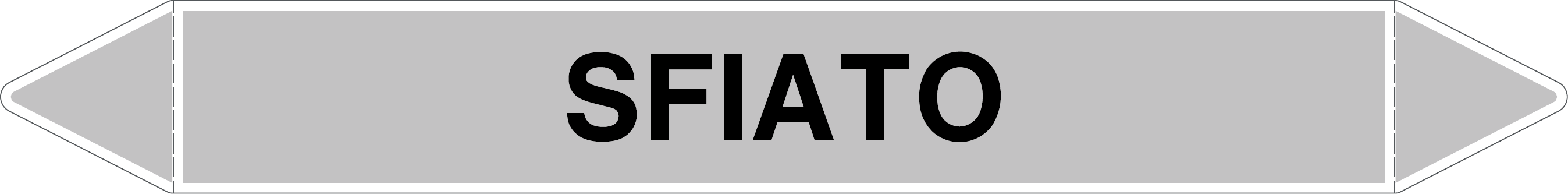 Etichetta autoadesiva per tubazioni realizzata esclusivamente in stampa digitale su PVC con film protettivo anti UV. Colore grigio con dicitura nera.