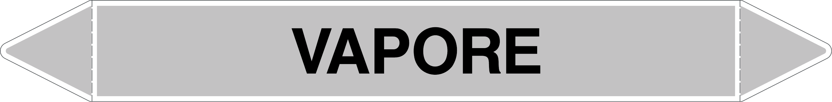 Etichetta autoadesiva per tubazioni realizzata esclusivamente in stampa digitale su PVC con film protettivo anti UV. Colore grigio con dicitura nera.