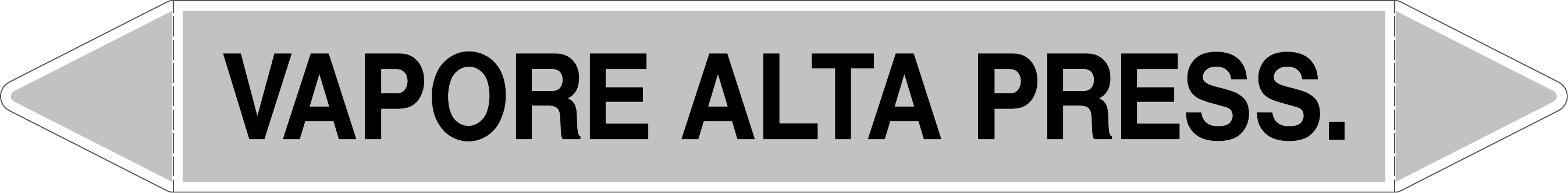 Etichetta autoadesiva per tubazioni realizzata esclusivamente in stampa digitale su PVC con film protettivo anti UV. Colore grigio con dicitura nera.