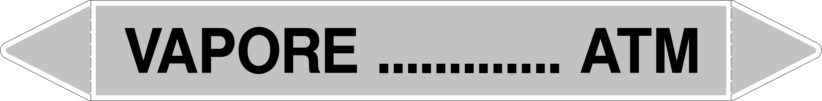 Etichetta autoadesiva per tubazioni realizzata esclusivamente in stampa digitale su PVC con film protettivo anti UV. Colore grigio con dicitura nera.