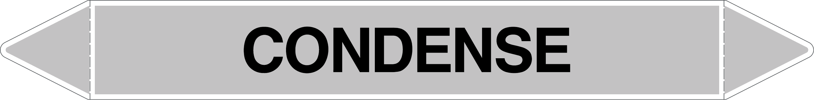 Etichetta autoadesiva per tubazioni realizzata esclusivamente in stampa digitale su PVC con film protettivo anti UV. Colore grigio con dicitura nera.
