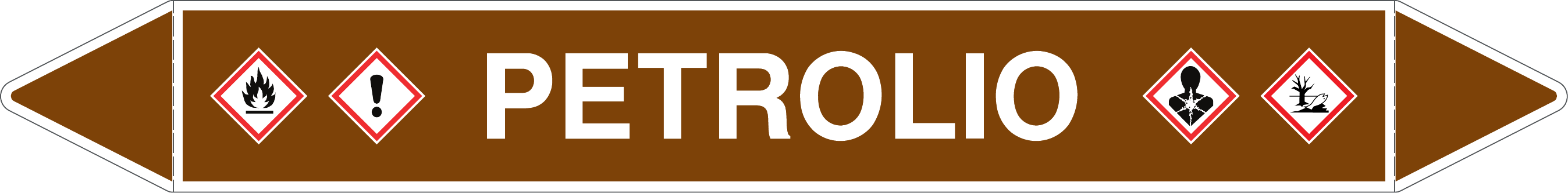 Etichetta autoadesiva per tubazioni realizzata esclusivamente in stampa digitale su PVC con film protettivo anti UV. Colore marrone con dicitura bianca.