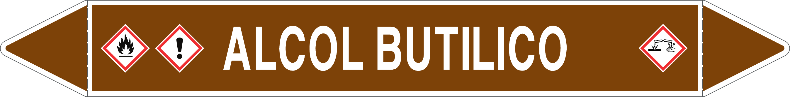 Etichetta autoadesiva per tubazioni realizzata esclusivamente in stampa digitale su PVC con film protettivo anti UV. Colore marrone con dicitura bianca.