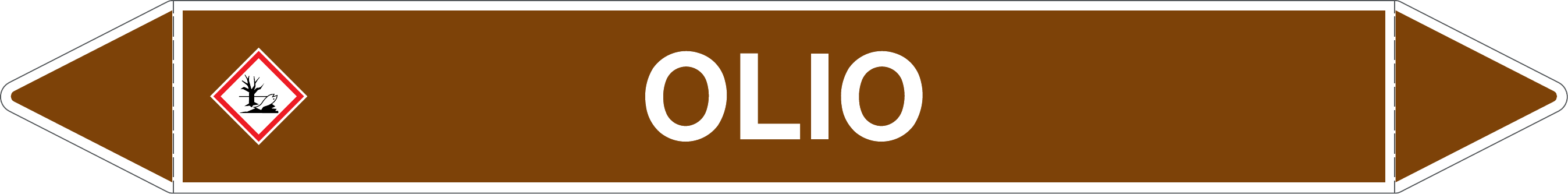 Etichetta autoadesiva per tubazioni realizzata esclusivamente in stampa digitale su PVC con film protettivo anti UV. Colore marrone con dicitura bianca.