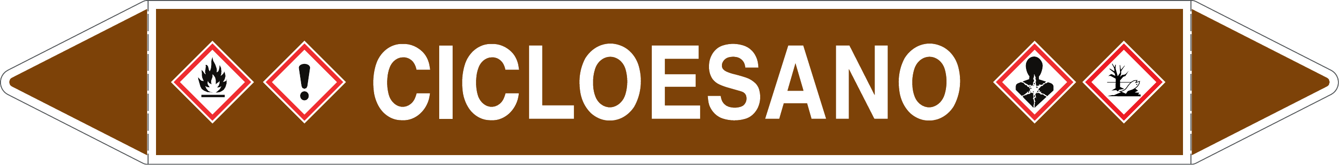 Etichetta autoadesiva per tubazioni realizzata esclusivamente in stampa digitale su PVC con film protettivo anti UV. Colore marrone con dicitura bianca.