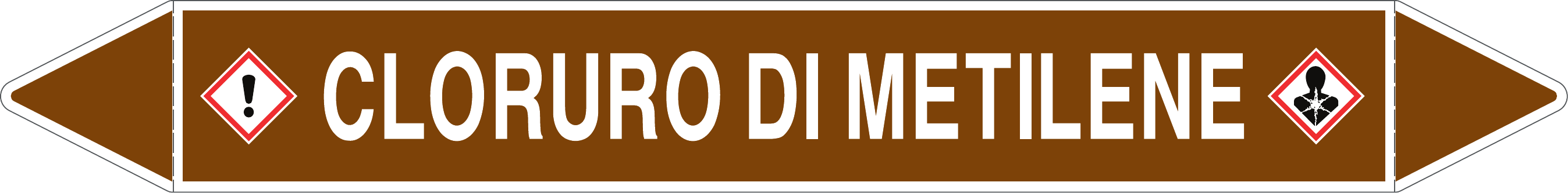 Etichetta autoadesiva per tubazioni realizzata esclusivamente in stampa digitale su PVC con film protettivo anti UV. Colore marrone con dicitura bianca.