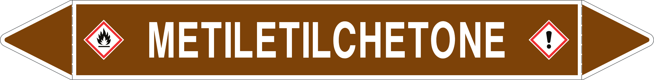 Etichetta autoadesiva per tubazioni realizzata esclusivamente in stampa digitale su PVC con film protettivo anti UV. Colore marrone con dicitura bianca.