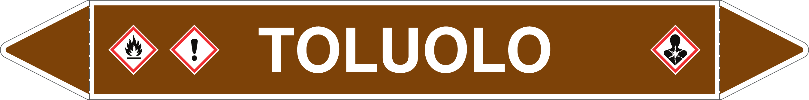 Etichetta autoadesiva per tubazioni realizzata esclusivamente in stampa digitale su PVC con film protettivo anti UV. Colore marrone con dicitura bianca.