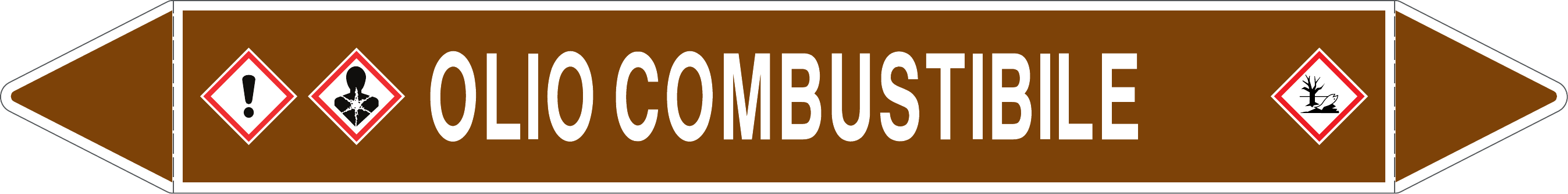Etichetta autoadesiva per tubazioni realizzata esclusivamente in stampa digitale su PVC con film protettivo anti UV. Colore marrone con dicitura bianca.