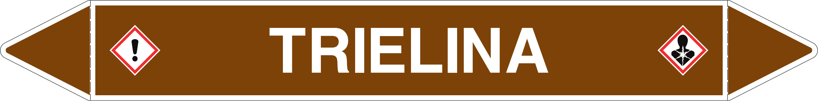 Etichetta autoadesiva per tubazioni realizzata esclusivamente in stampa digitale su PVC con film protettivo anti UV. Colore marrone con dicitura bianca.