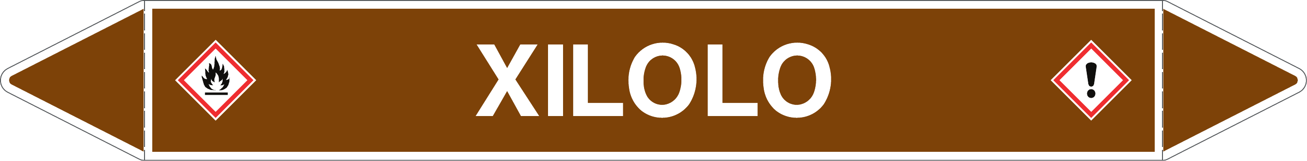 Etichetta autoadesiva per tubazioni realizzata esclusivamente in stampa digitale su PVC con film protettivo anti UV. Colore marrone con dicitura bianca.
