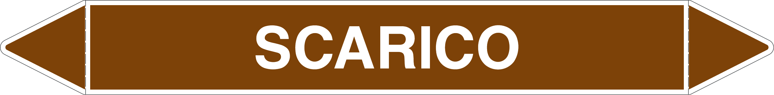 Etichetta autoadesiva per tubazioni realizzata esclusivamente in stampa digitale su PVC con film protettivo anti UV. Colore marrone con dicitura bianca.