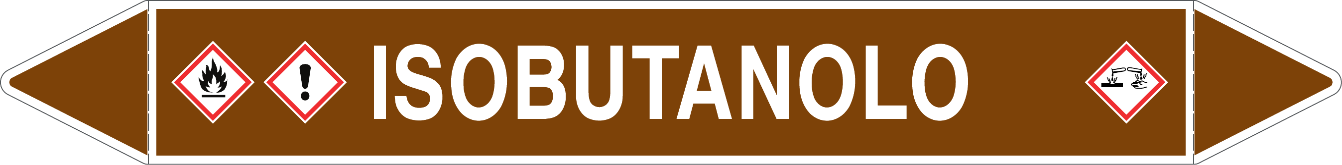 Etichetta autoadesiva per tubazioni realizzata esclusivamente in stampa digitale su PVC con film protettivo anti UV. Colore marrone con dicitura bianca.