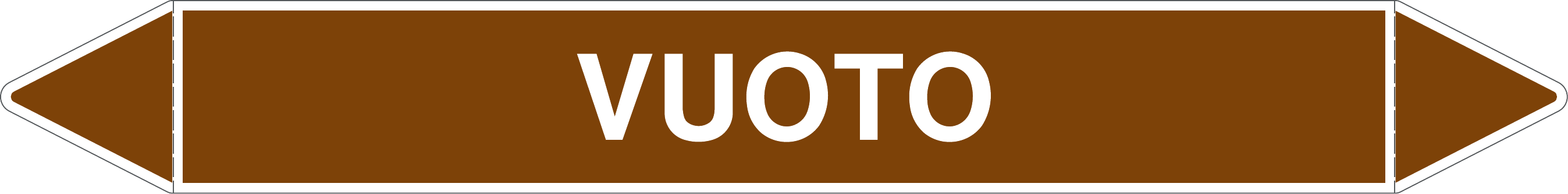Etichetta autoadesiva per tubazioni realizzata esclusivamente in stampa digitale su PVC con film protettivo anti UV. Colore marrone con dicitura bianca.