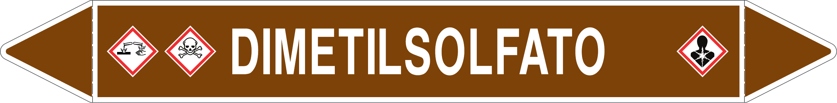 Etichetta autoadesiva per tubazioni realizzata esclusivamente in stampa digitale su PVC con film protettivo anti UV. Colore marrone con dicitura bianca.
