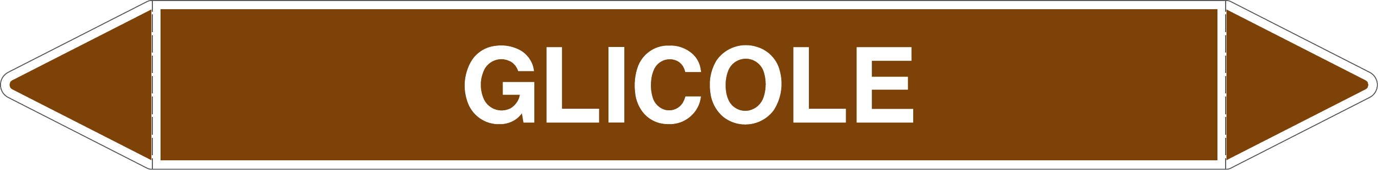 Etichetta autoadesiva per tubazioni realizzata esclusivamente in stampa digitale su PVC con film protettivo anti UV. Colore marrone con dicitura bianca.
