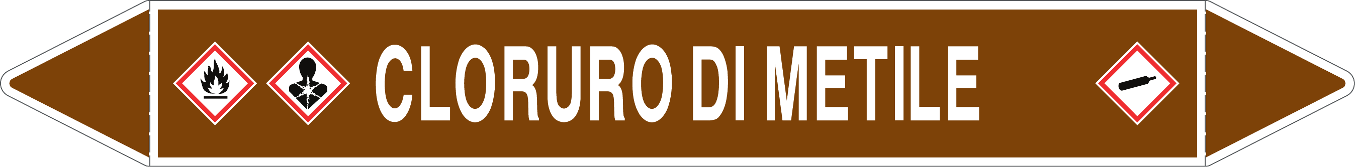 Etichetta autoadesiva per tubazioni realizzata esclusivamente in stampa digitale su PVC con film protettivo anti UV. Colore marrone con dicitura bianca.