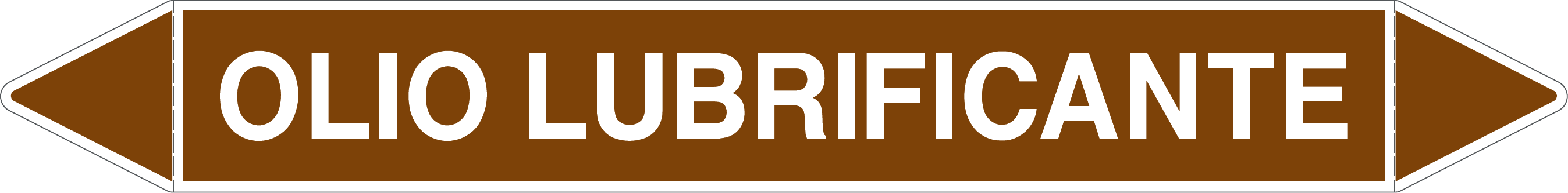 Etichetta autoadesiva per tubazioni realizzata esclusivamente in stampa digitale su PVC con film protettivo anti UV. Colore marrone con dicitura bianca.