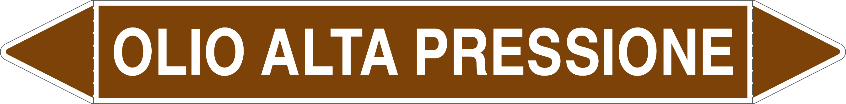 Etichetta autoadesiva per tubazioni realizzata esclusivamente in stampa digitale su PVC con film protettivo anti UV. Colore marrone con dicitura bianca.