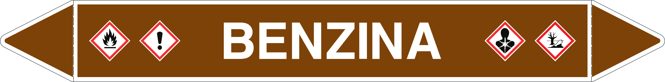 Etichetta autoadesiva per tubazioni realizzata esclusivamente in stampa digitale su PVC con film protettivo anti UV. Colore marrone con dicitura bianca.