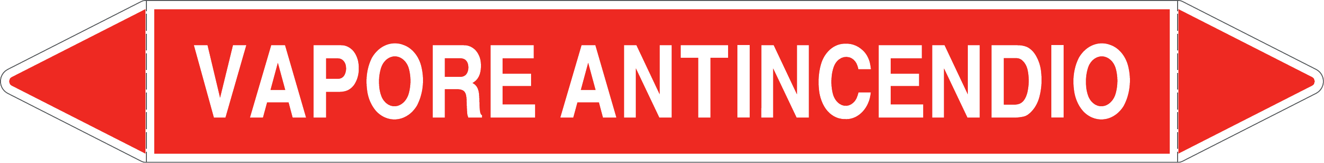 Etichetta autoadesiva per tubazioni realizzata esclusivamente in stampa digitale su PVC con film protettivo anti UV. Colore rosso con dicitura bianca.