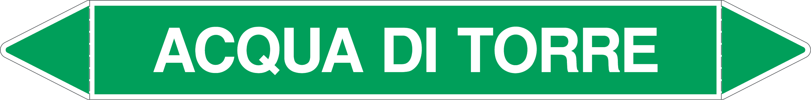 Etichetta autoadesiva per tubazioni realizzata esclusivamente in stampa digitale su PVC con film protettivo anti UV. Colore verde con dicitura bianca.
