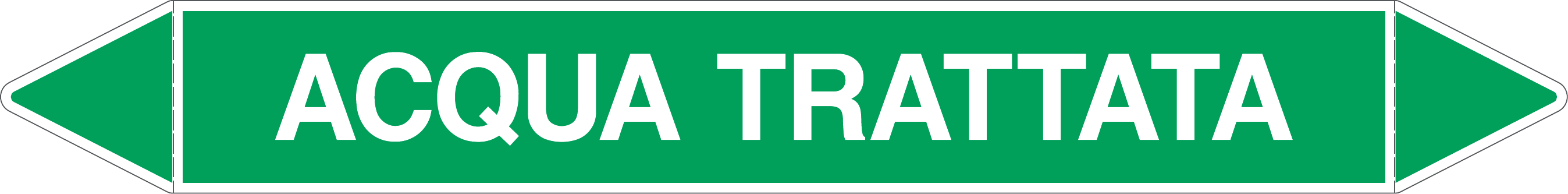 Etichetta autoadesiva per tubazioni realizzata esclusivamente in stampa digitale su PVC con film protettivo anti UV. Colore verde con dicitura bianca.