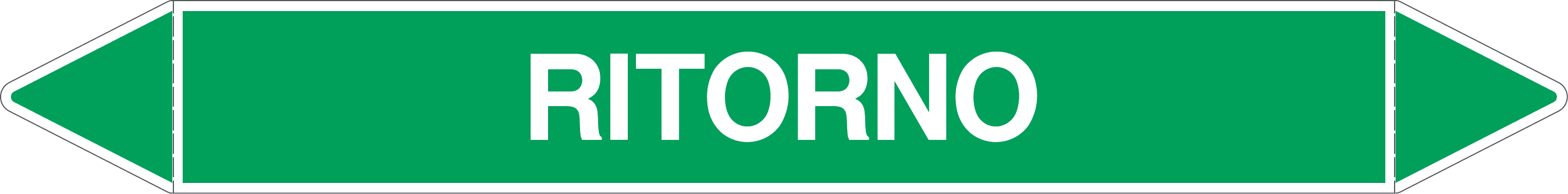 Etichetta autoadesiva per tubazioni realizzata esclusivamente in stampa digitale su PVC con film protettivo anti UV. Colore verde con dicitura bianca.