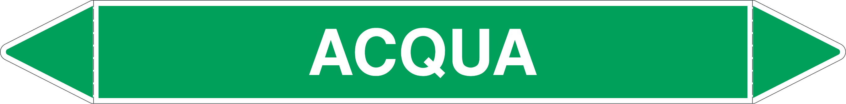 Etichetta autoadesiva per tubazioni realizzata esclusivamente in stampa digitale su PVC con film protettivo anti UV. Colore verde con dicitura bianca.