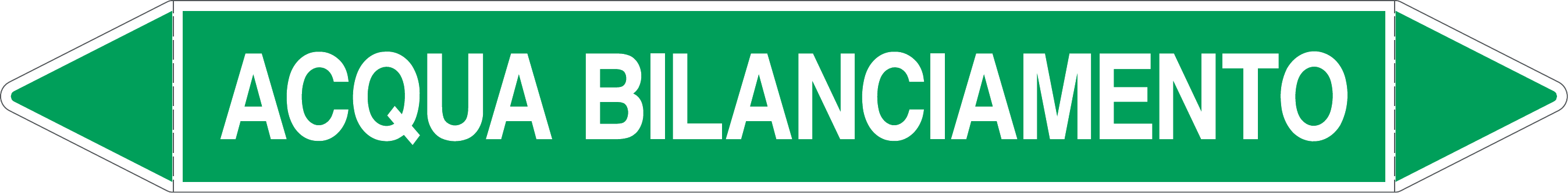 Etichetta autoadesiva per tubazioni realizzata esclusivamente in stampa digitale su PVC con film protettivo anti UV. Colore verde con dicitura bianca.